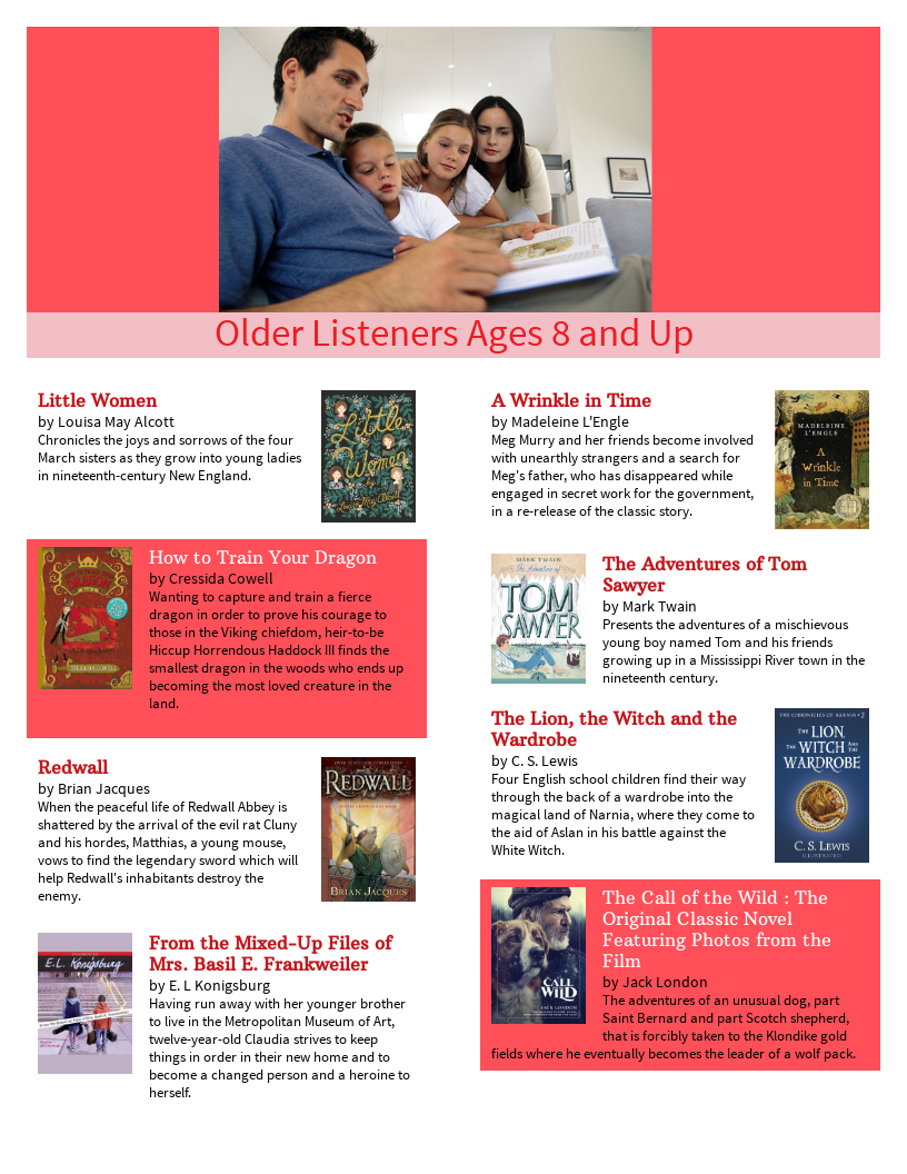 These titles are great for older kids (ages 8+) to listen to in audiobooks (or to read on their own)!